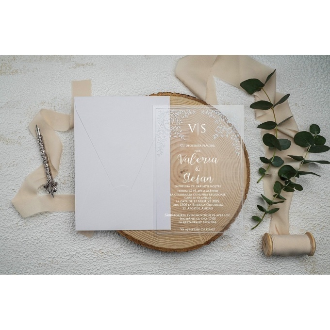 Invitație de nuntă transparentă cu plic alb