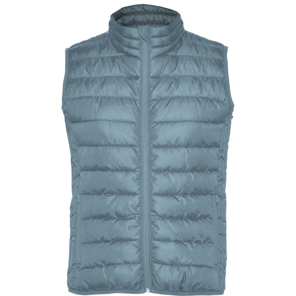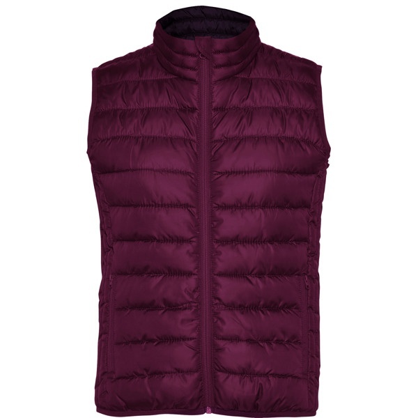 Vestă cambrată căptușită. Rezistentă la vânt și rezistentă la apă. Fermoar frontal inversat asortat cu apărătoare de bărbie din același material. Buzunare laterale cu fermoare inversate asortate, așezate pe părțile laterale modelate, pentru o potrivire mai adaptată la nivelul pieptului. Tiv elastic asortat. Căptușeală interioară în contrast.